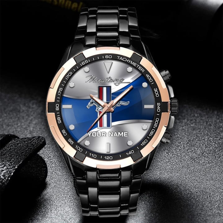 With the launch of the exclusive Made-to-Order service, you can make your watch unique by not only having your special Mustang Emblem but also your Name printed on the watch. Elevate your style with our custom watches featuring your favorite car logo. Meticulously crafted for durability and water resistance, these watches are the perfect item for daily use. Discover the ultimate combination of luxury, utility, and personalization!