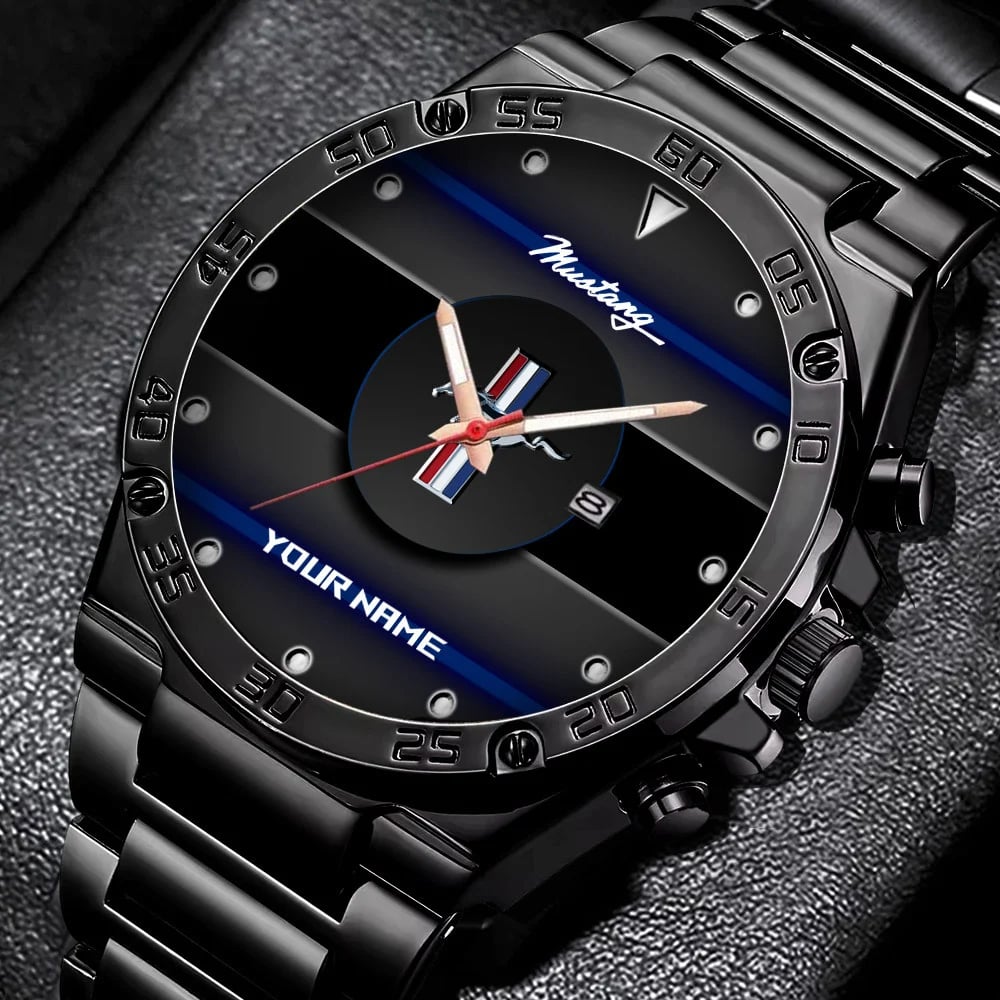 With the launch of the exclusive Made-to-Order service, you can make your watch unique by not only having your special Mustang Emblem but also your Name printed on the watch. Elevate your style with our custom watches featuring your favorite car logo. Meticulously crafted for durability and water resistance, these watches are the perfect item for daily use. Discover the ultimate combination of luxury, utility, and personalization!