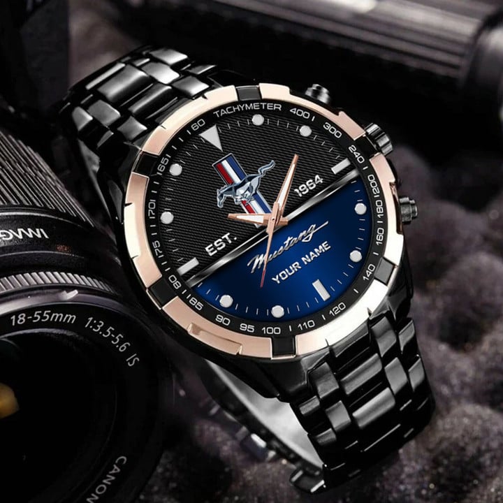 With the launch of the exclusive Made-to-Order service, you can make your watch unique by not only having your special Mustang Emblem but also your Name printed on the watch. Elevate your style with our custom watches featuring your favorite car logo. Meticulously crafted for durability and water resistance, these watches are the perfect item for daily use. Discover the ultimate combination of luxury, utility, and personalization!