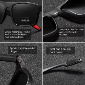🕶 Advanced Polarized UV400 Protection – Equipped with UV400 polarized lenses that block harmful UVA & UVB rays while reducing glare from water, snow, and roads. Ideal for driving, fishing, hiking, and outdoor sports.