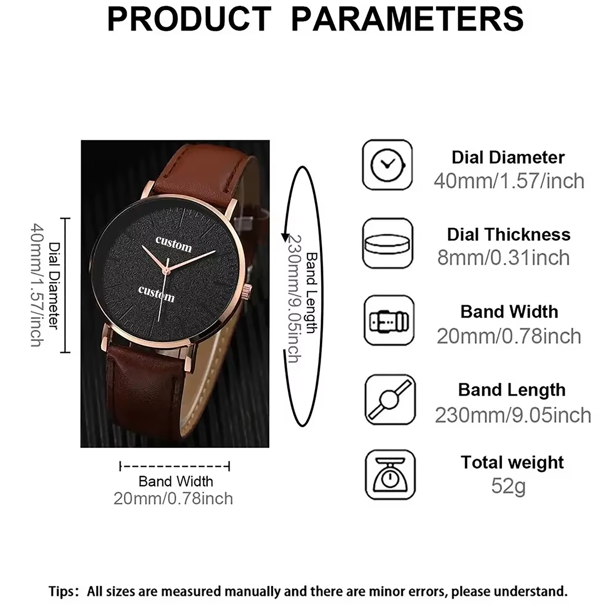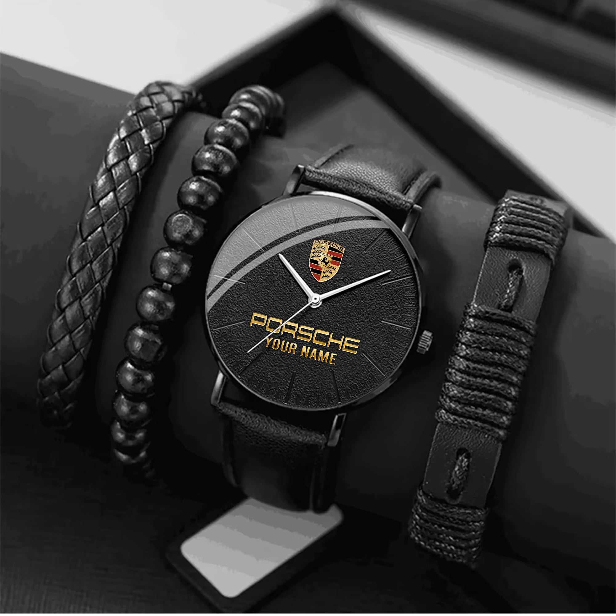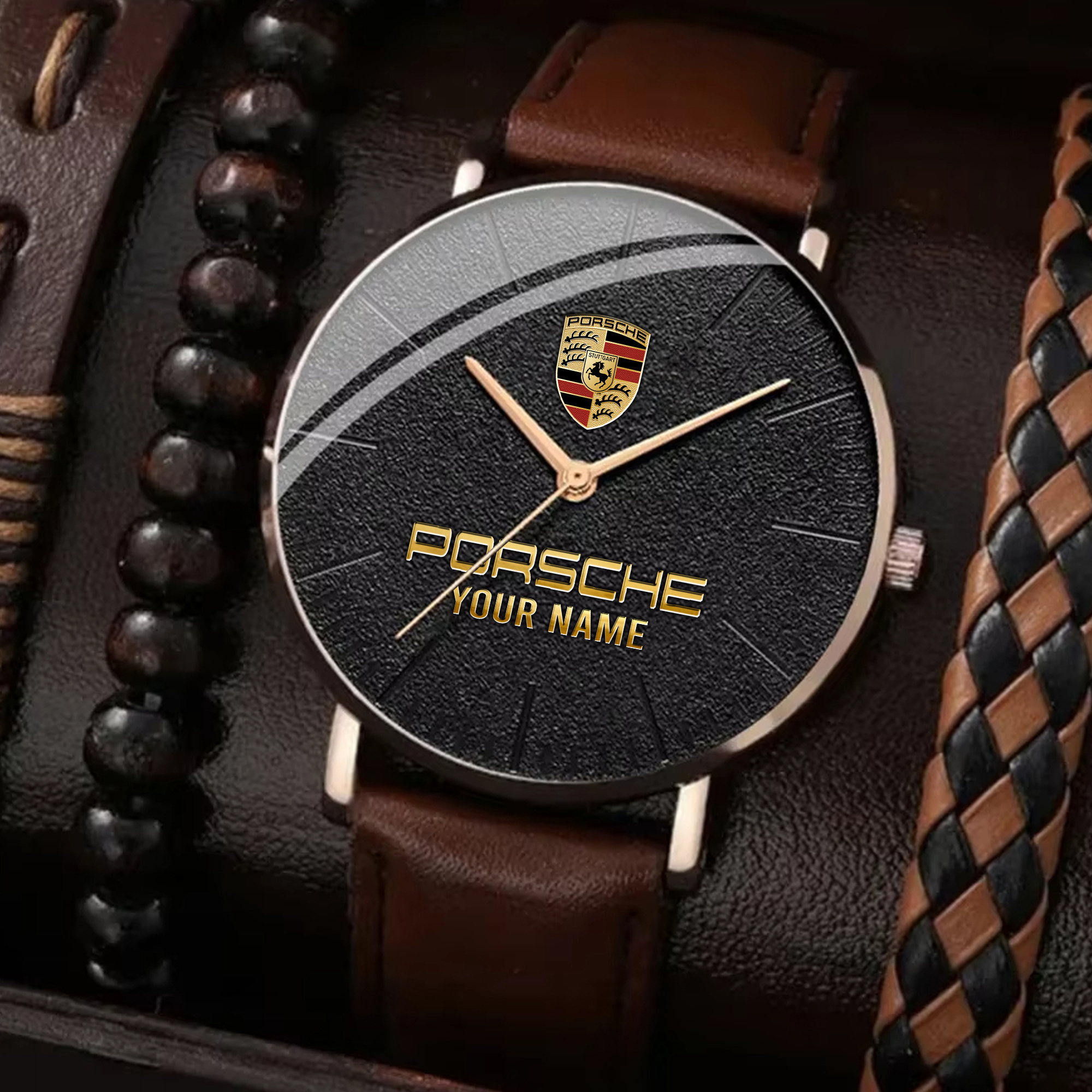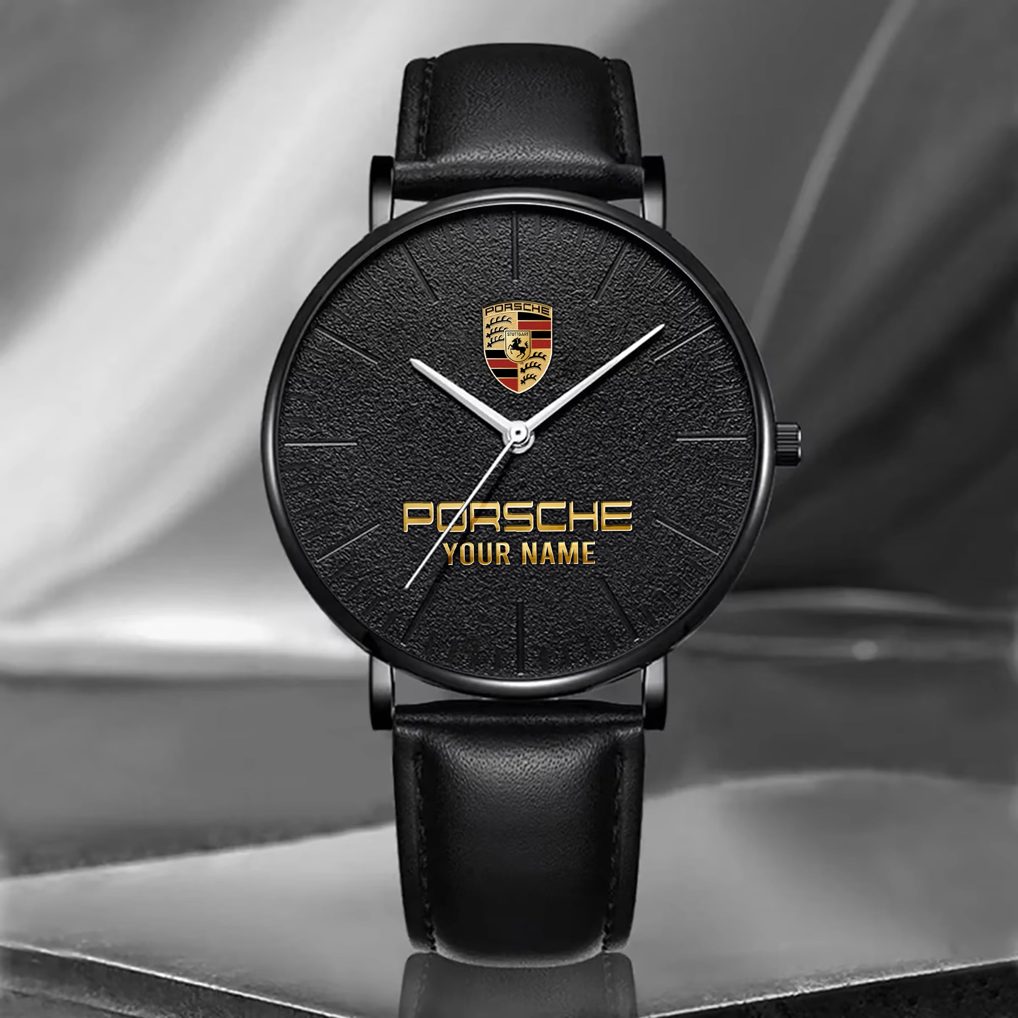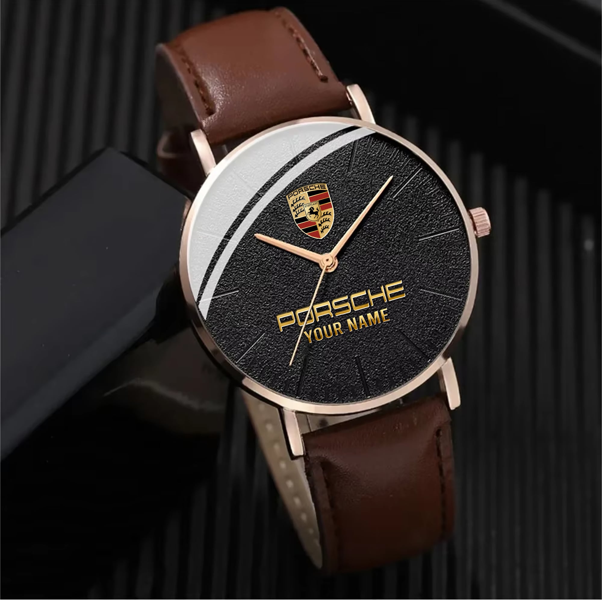 Porsche Custom Name Casual Business Men Leather Quartz Watch VS100