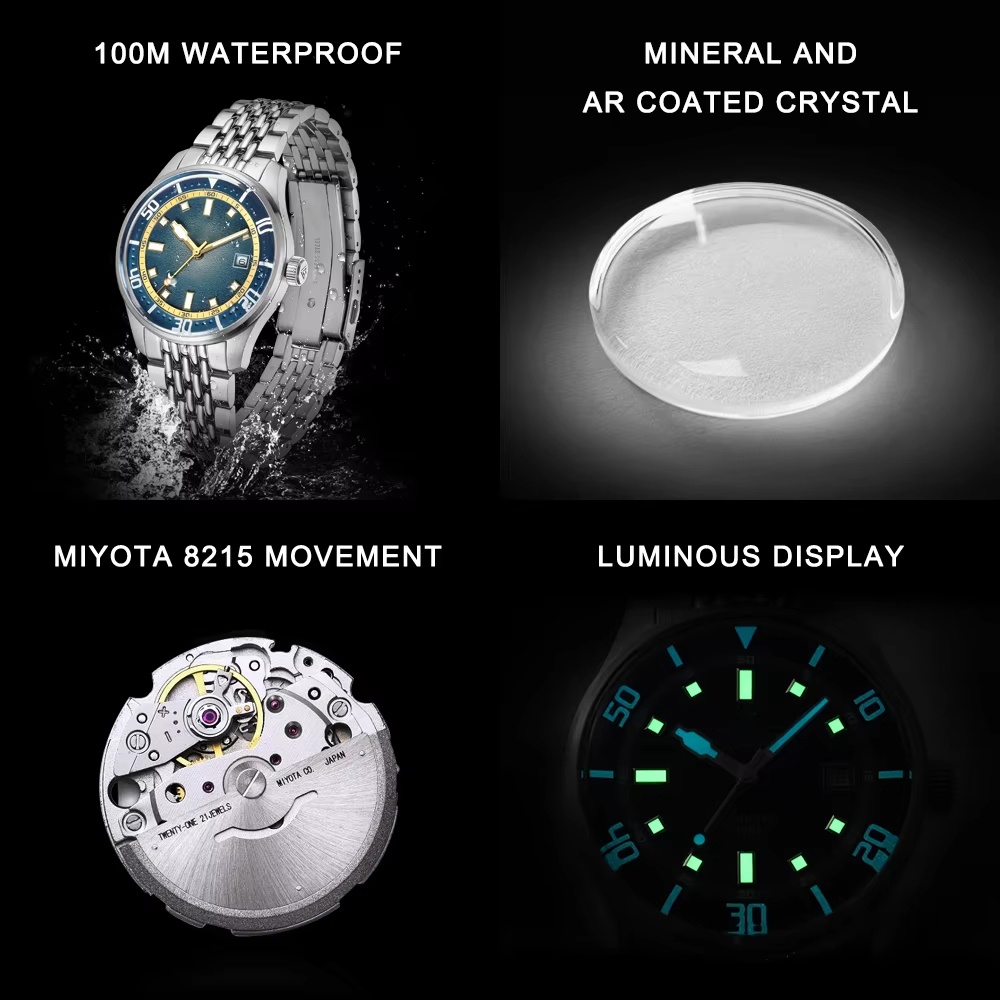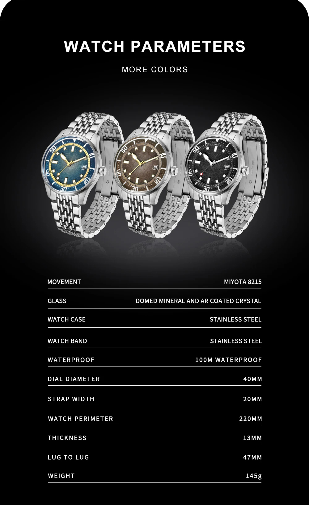 • Automatic Self-Wind Movement :Experience the Japan MIYOTA 8215 luxury of a self-winding mechanical wristwatch, ensuring accurate timekeeping without the need for frequent manual adjustments.