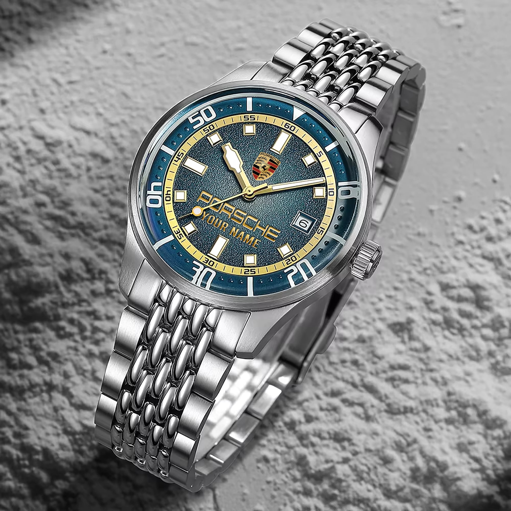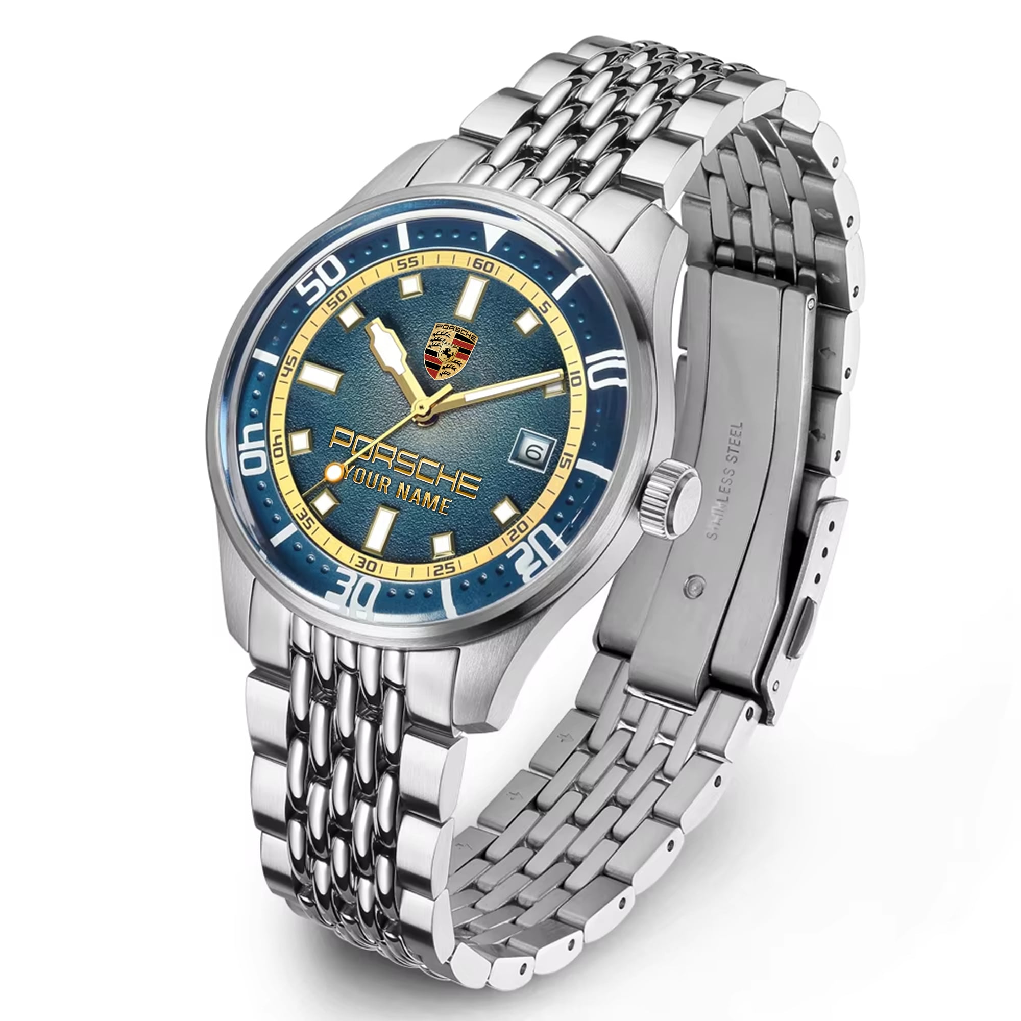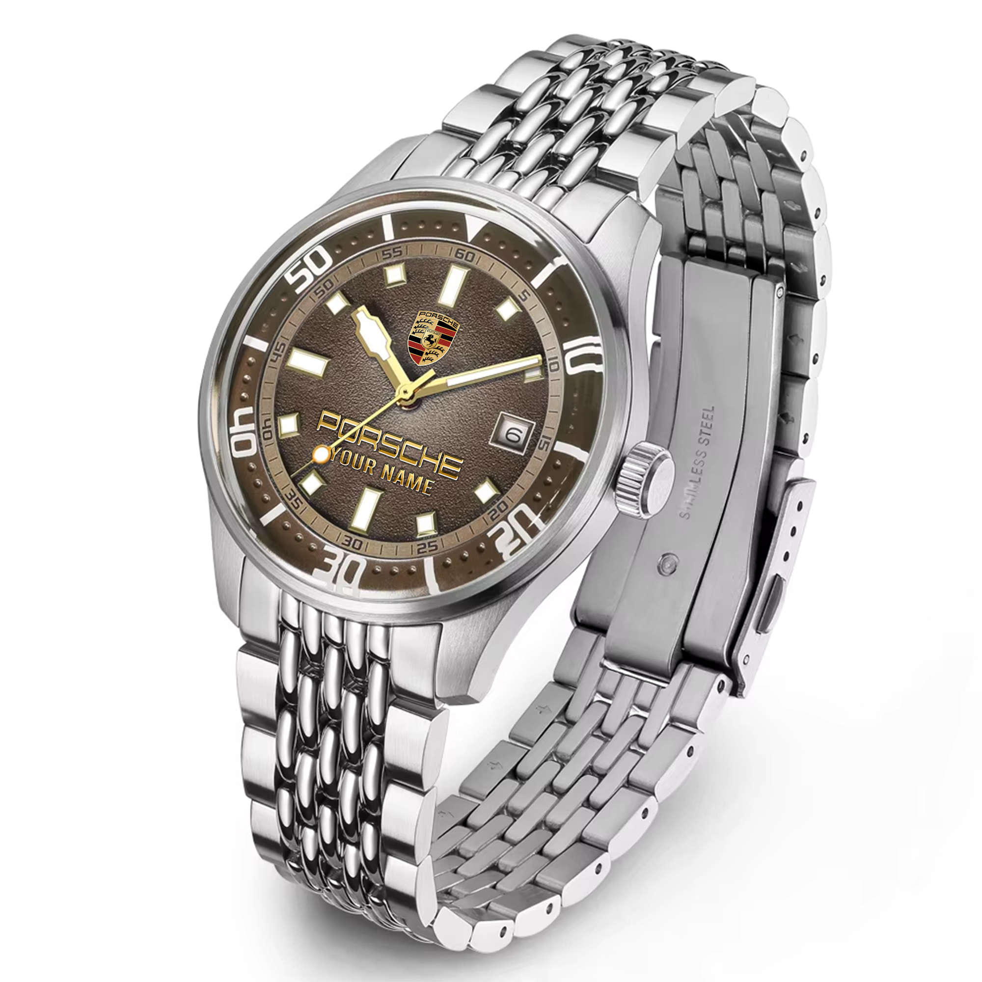 With the launch of the exclusive Made-to-Order service, you can make your watch unique by not only having your special Porsche Emblem but also your Name printed on the watch. Elevate your style with our custom watches featuring your favorite car logo. Meticulously crafted for durability and water resistance, these watches are the perfect item for daily use. Discover the ultimate combination of luxury, utility, and personalization!