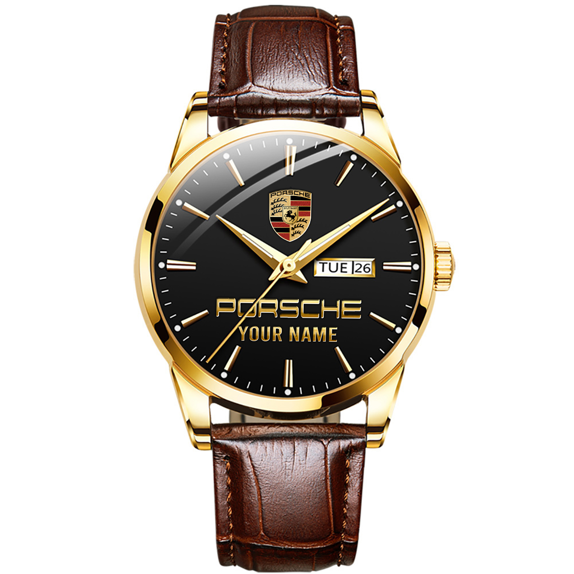With the launch of the exclusive Made-to-Order service, you can make your watch unique by not only having your special Porsche Emblem but also your Name printed on the watch. Elevate your style with our custom watches featuring your favorite car logo. Meticulously crafted for durability and water resistance, these watches are the perfect item for daily use. Discover the ultimate combination of luxury, utility, and personalization!