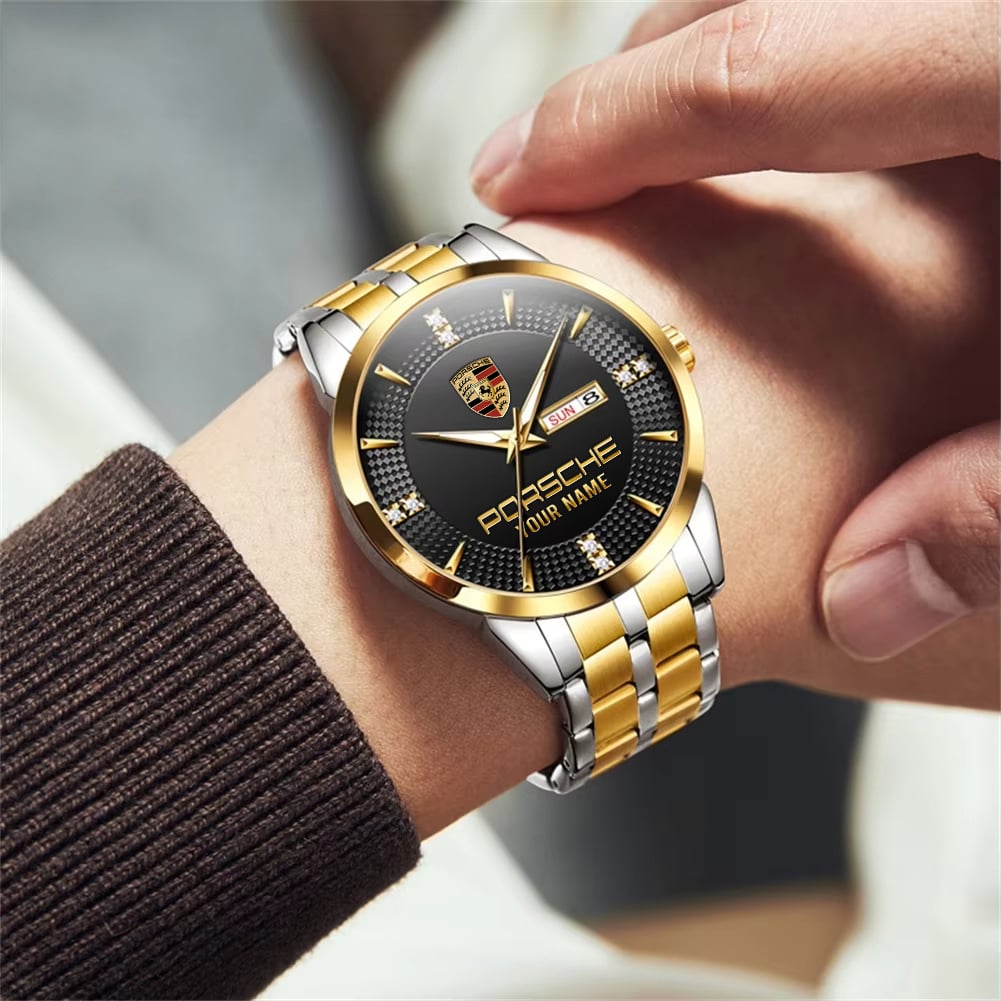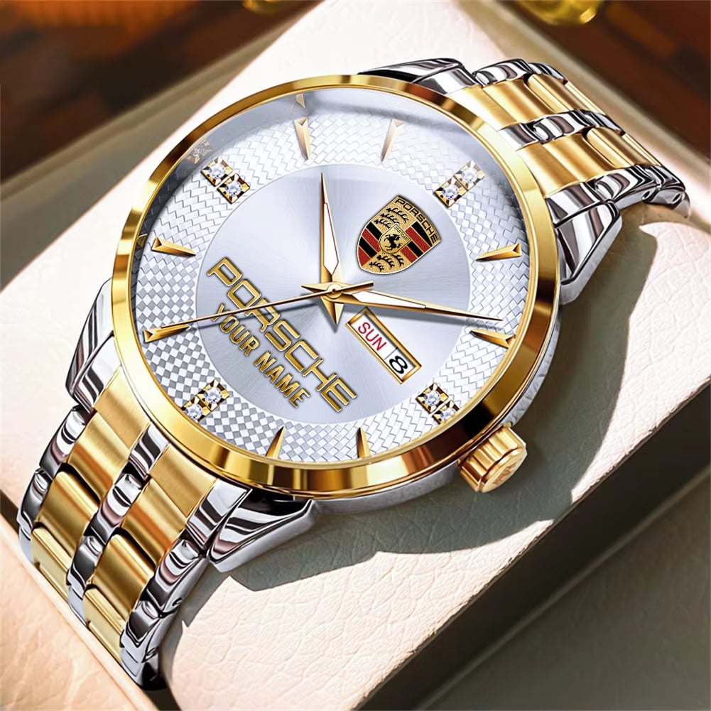 With the launch of the exclusive Made-to-Order service, you can make your watch unique by not only having your special Porsche Emblem but also your Name printed on the watch. Elevate your style with our custom watches featuring your favorite car logo. Meticulously crafted for durability and water resistance, these watches are the perfect item for daily use. Discover the ultimate combination of luxury, utility, and personalization!