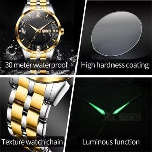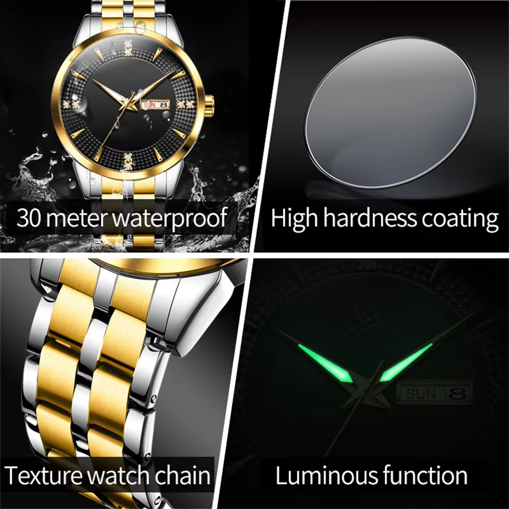 - Features: Shock Resistant, Luminous Hands, Auto Date, Week Display, Anti-Magnetic