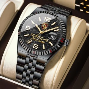With the launch of the exclusive Made-to-Order service, you can make your watch unique by not only having your special Porsche Emblem but also your Name printed on the watch. Elevate your style with our custom watches featuring your favorite car logo. Meticulously crafted for durability and water resistance, these watches are the perfect item for daily use. Discover the ultimate combination of luxury, utility, and personalization!