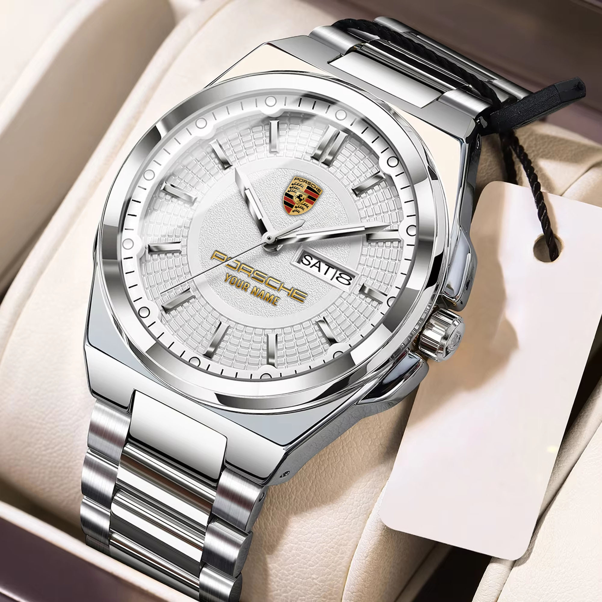 With the launch of the exclusive Made-to-Order service, you can make your watch unique by not only having your special Porsche Emblem but also your Name printed on the watch. Elevate your style with our custom watches featuring your favorite car logo. Meticulously crafted for durability and water resistance, these watches are the perfect item for daily use. Discover the ultimate combination of luxury, utility, and personalization!