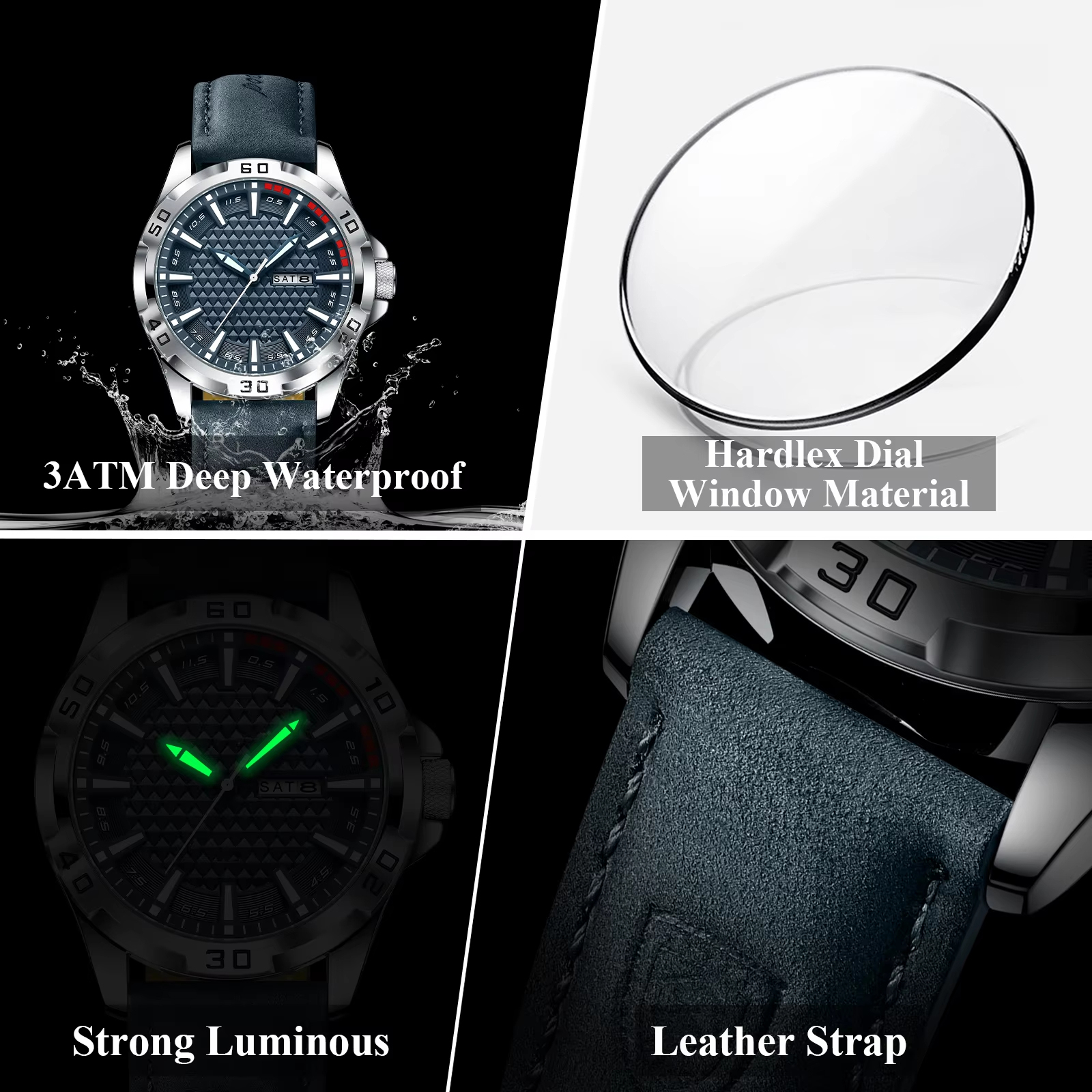 - Features: Luminous Hands, Auto Date, Week Display
