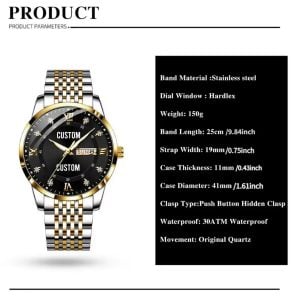• Men’s Wristwatch: Designed for men; ideal as a personalized gift or everyday accessory.