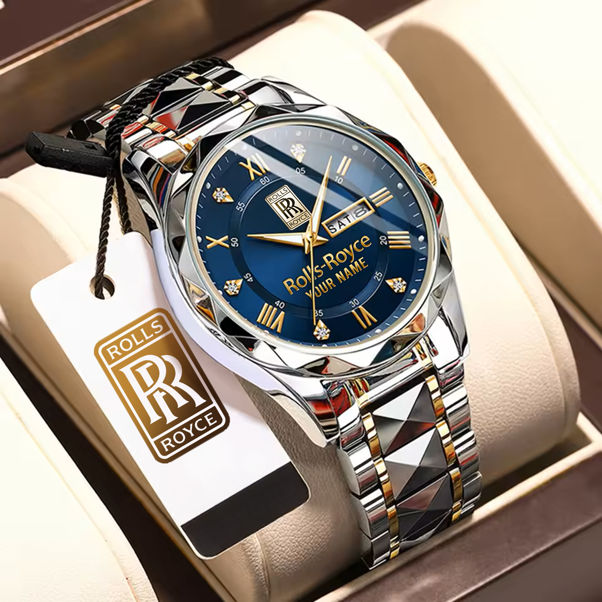 With the launch of the exclusive Made-to-Order service, you can make your watch unique by not only having your special Rolls Royce Emblem but also your Name printed on the watch. Elevate your style with our custom watches featuring your favorite car logo. Meticulously crafted for durability and water resistance, these watches are the perfect item for daily use. Discover the ultimate combination of luxury, utility, and personalization!