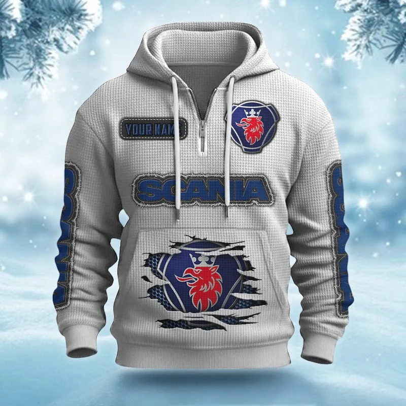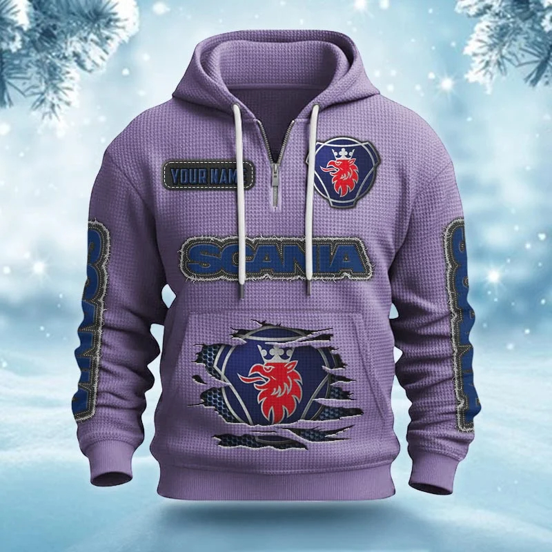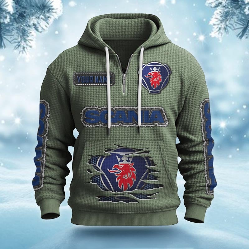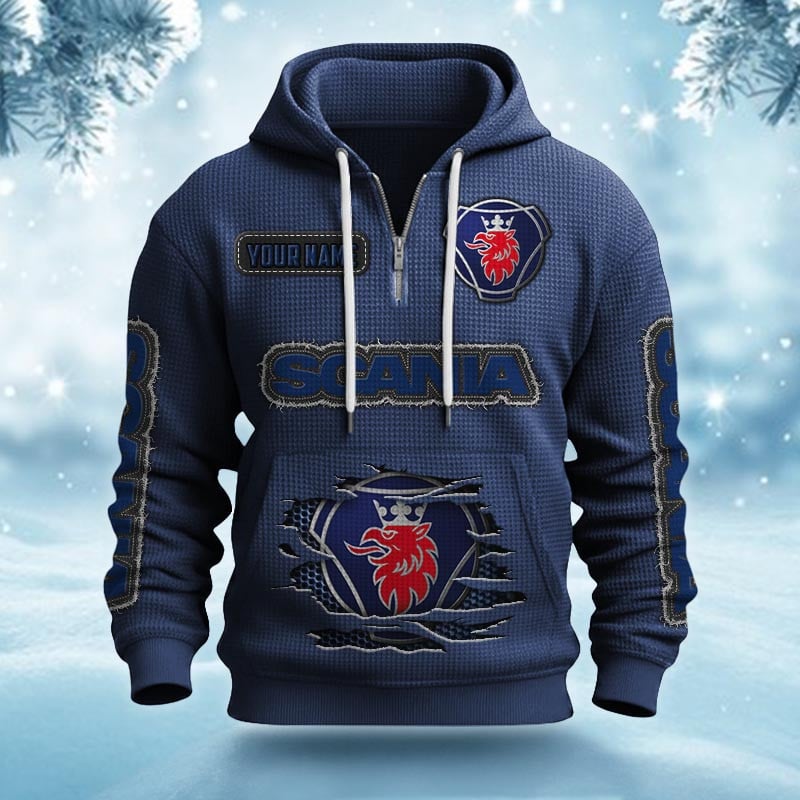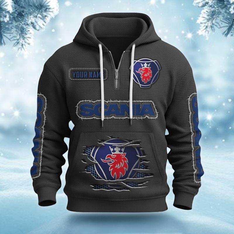 Hi there!! Are you looking at our Scania Half-zip Hoodie. These Half-zip Hoodies are unique, made with love, and they are perfect accessories for your outfit. The Scania Emblem on the Half-zip Hoodie makes it a perfect item for any Scania Lovers.