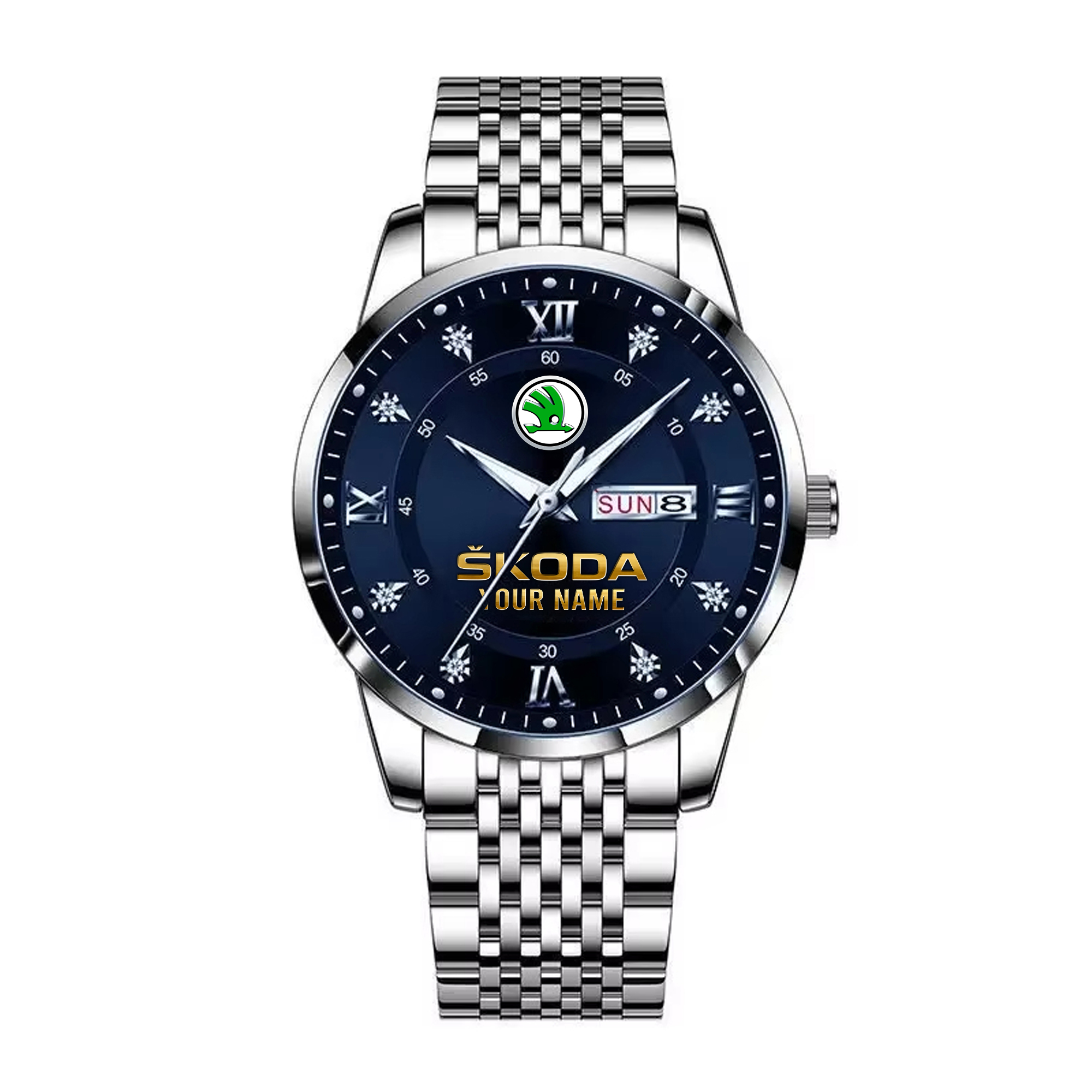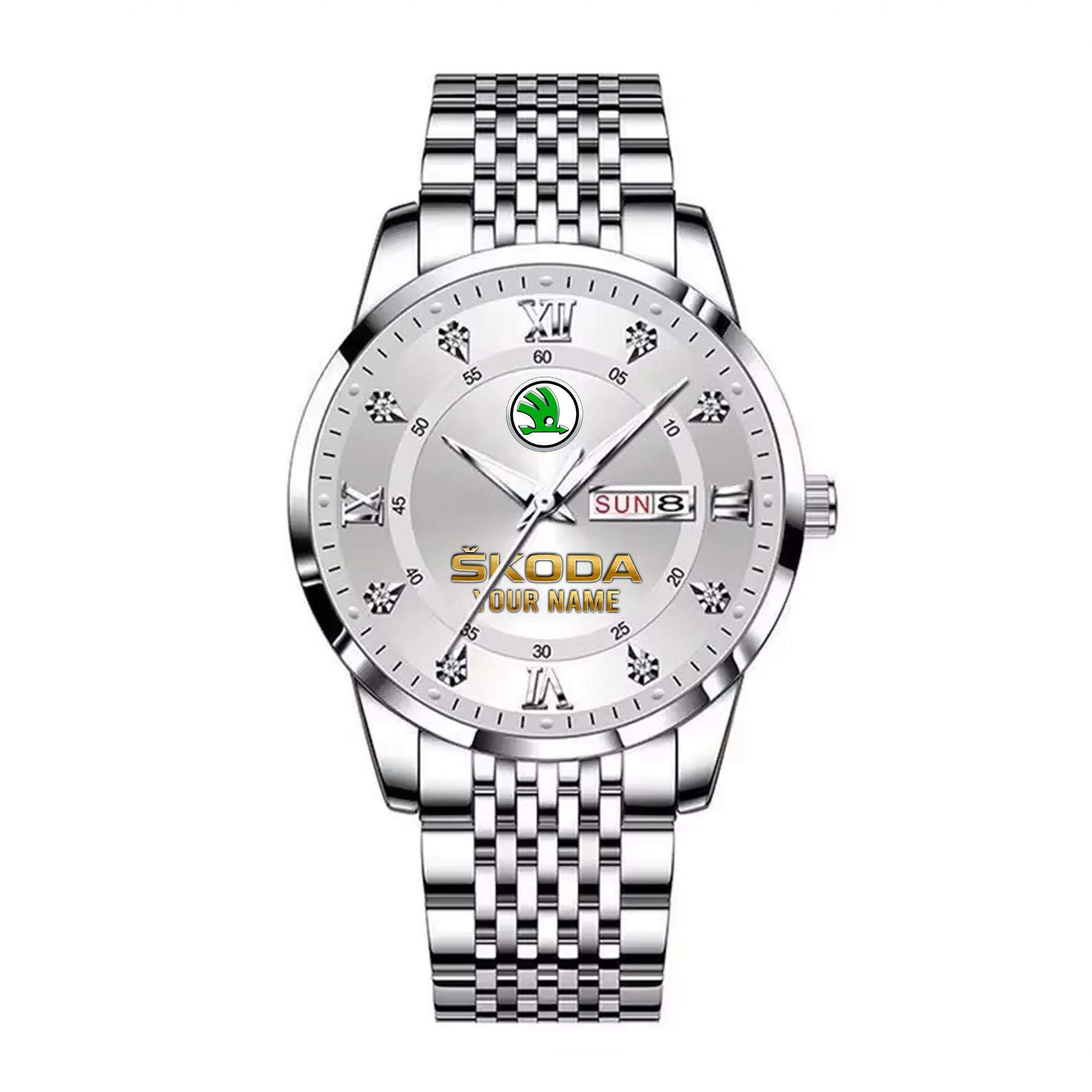 With the launch of the exclusive Made-to-Order service, you can make your watch unique by not only having your special Skoda Emblem but also your Name printed on the watch. Elevate your style with our custom watches featuring your favorite car logo. Meticulously crafted for durability and water resistance, these watches are the perfect item for daily use. Discover the ultimate combination of luxury, utility, and personalization!