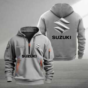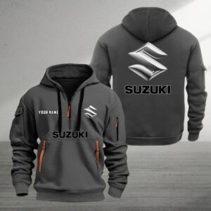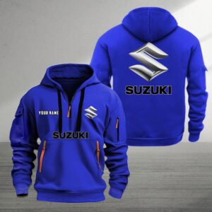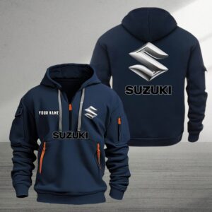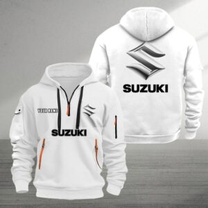 Hi there!! Are you looking at our Suzuki Half-zip Hoodie. These Half-zip Hoodies are unique, made with love, and they are perfect accessories for your outfit. The Suzuki Emblem on the Half-zip Hoodie makes it a perfect item for any Suzuki Lovers.