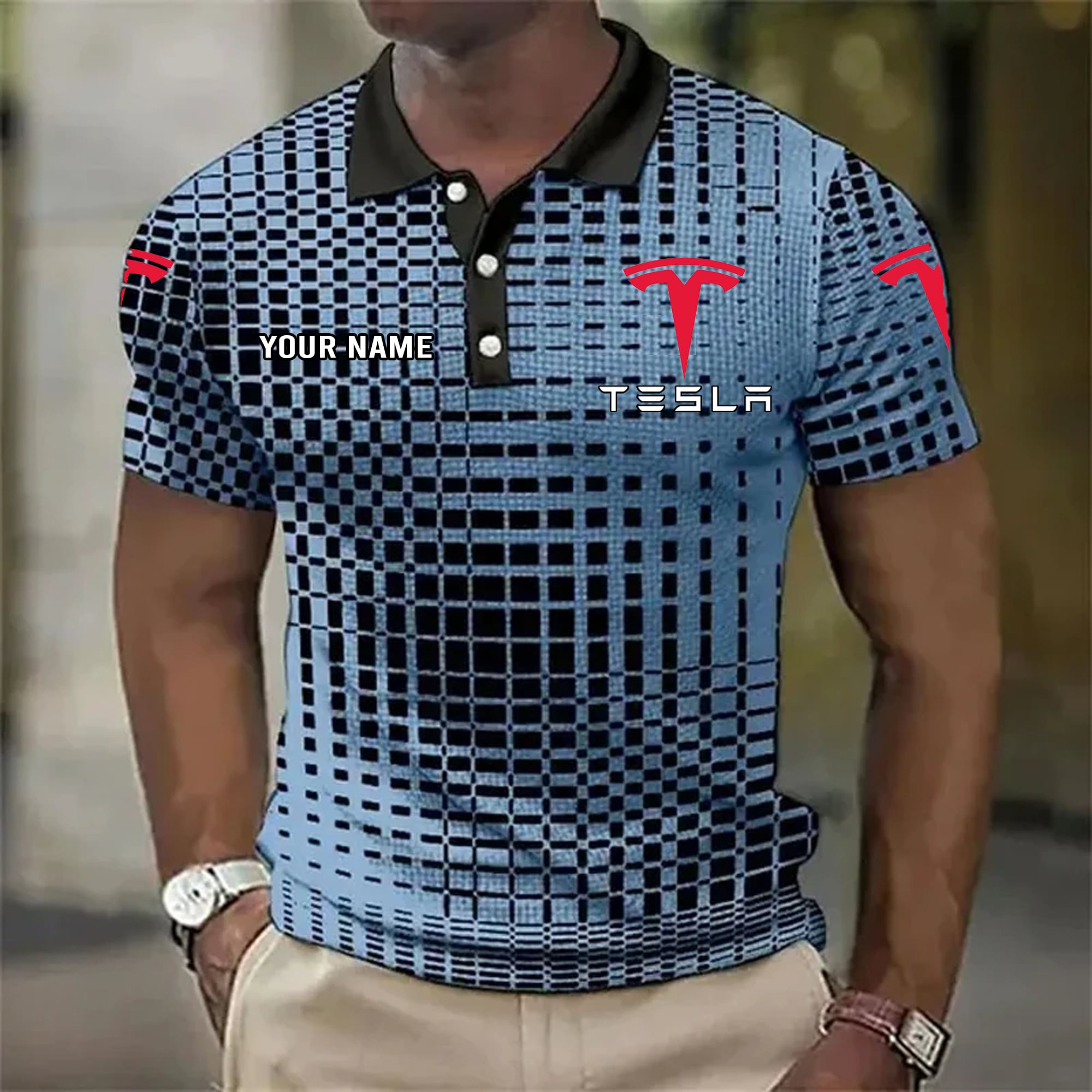 Hi there!! Are you looking at our Tesla Polo Shirts. These Polo Shirts are unique, made with love, and they are perfect accessories for your outfit. The Tesla Emblem on the Shirts makes it a perfect item for any Tesla Lovers.