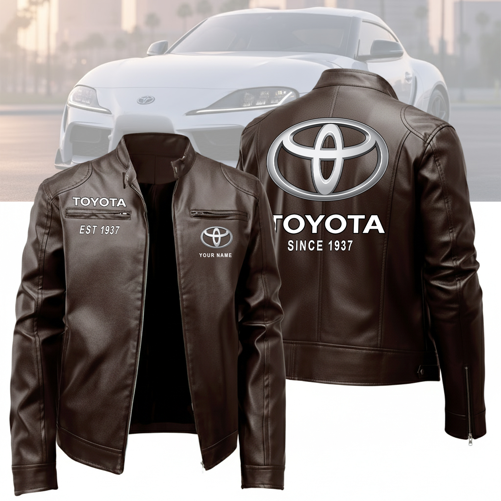 Hi there!! Are you looking at our Toyota Leather Jacket. These Leather Jackets are unique, made with love, and they are perfect accessories for your outfit. The Toyota Emblem on the Leather Jackets makes it a perfect item for any Toyota Lovers.