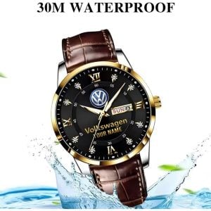 With the launch of the exclusive Made-to-Order service, you can make your watch unique by not only having your special Volkswagen Emblem but also your Name printed on the watch. Elevate your style with our custom watches featuring your favorite car logo. Meticulously crafted for durability and water resistance, these watches are the perfect item for daily use. Discover the ultimate combination of luxury, utility, and personalization!
