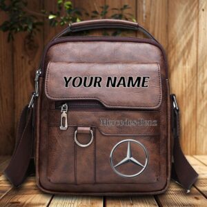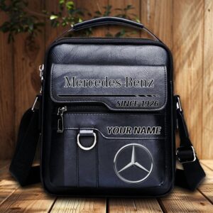 Mercedes-Benz Custom Name Men Leather Crossbody Bag, Cell Phone Purse, Zipper Shoulder Bag VS02